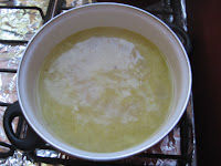 1. Coloque as duas xícaras de água numa chaleira ou caneca, no fogo alto. Numa panela média, esquente duas colheres de azeite de oliva (ou óleo) e adicione meia cebola picada em pedaços bem pequenos — esta quantidade é mínima, para temperar, mas se preferir pode por até uma cebola inteira (média). Deixe dourar e acrescente alho picado a gosto, desses já prontos, mas escolha uma marca decente, pois algumas apresentam pequenos pedaços brancos que não douram e nem sabor de alho têm.