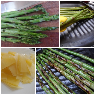 4. Depois leve um pedaço de parmesão à mesa e rale algumas lascas sobre os aspargos. Se desejar uma perfeita fusão entre os dois, coloque o parmesão ainda na grelha.