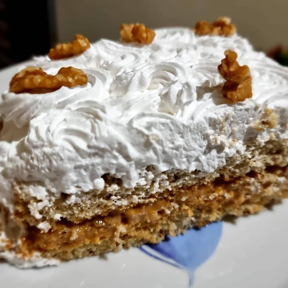 Esse bolo de nozes é espetacular !! Não por acaso, foi escolhido em enquete em minhas redes sociais como o objeto de desejo para hoje. Perfeito para ocasiões especiais, impressiona e serve a muitas pessoas, com seu delicioso recheio de doce de leite e nozes picadas, além da delicada cobertura de chantilly enfeitada.
