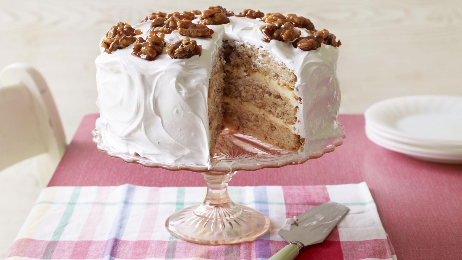 Esse bolo de nozes é espetacular !! Não por acaso, foi escolhido em enquete em minhas redes sociais como o objeto de desejo. Perfeito para ocasiões especiais, impressiona e serve a muitas pessoas, com seu delicioso recheio de doce de leite e nozes picadas, além da delicada cobertura.