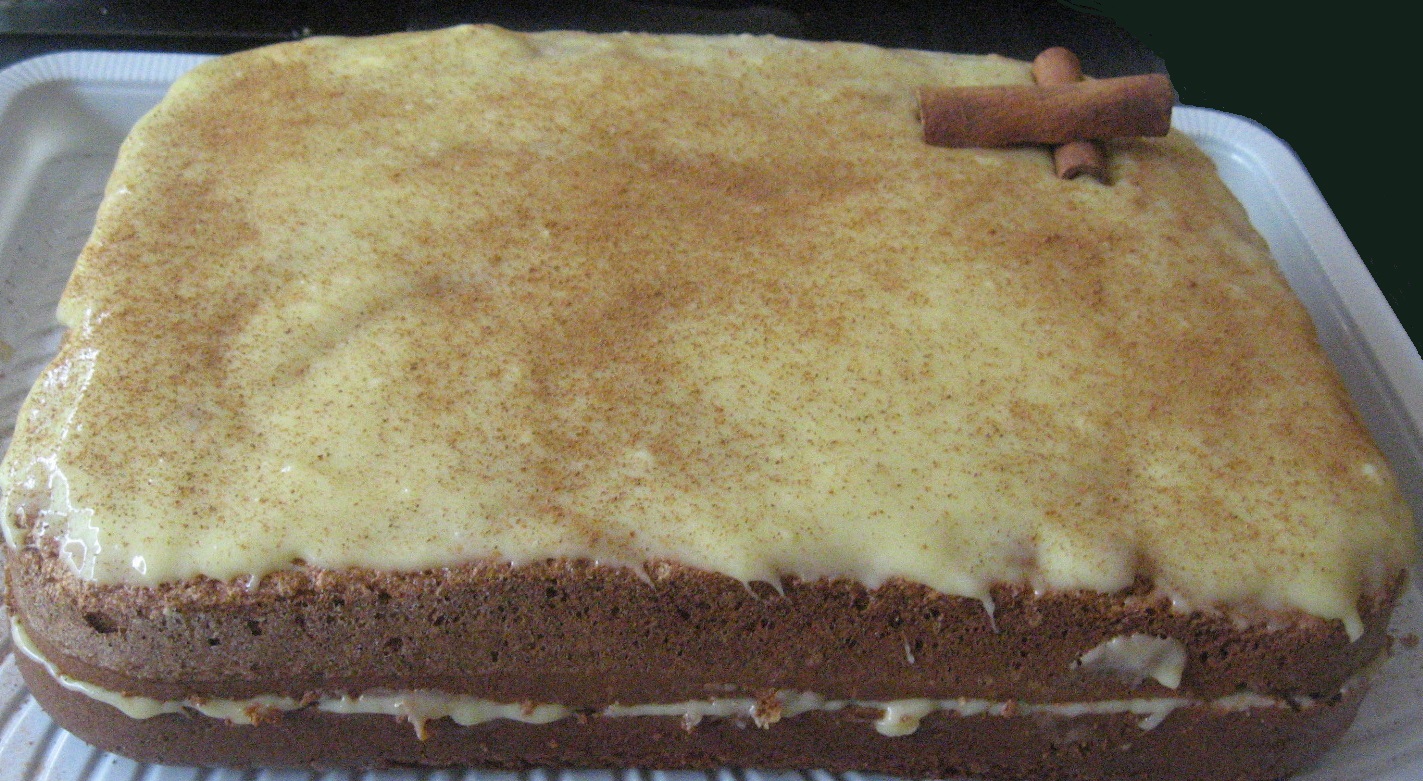 3. Coloque o restante do creme por cima do bolo e polvilhe canela em pó, decorando como desejar.
