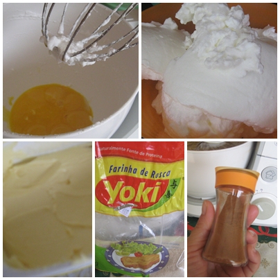 4. Misture a farinha de rosca, a canela e o fermento em pó e deixe bater bem.