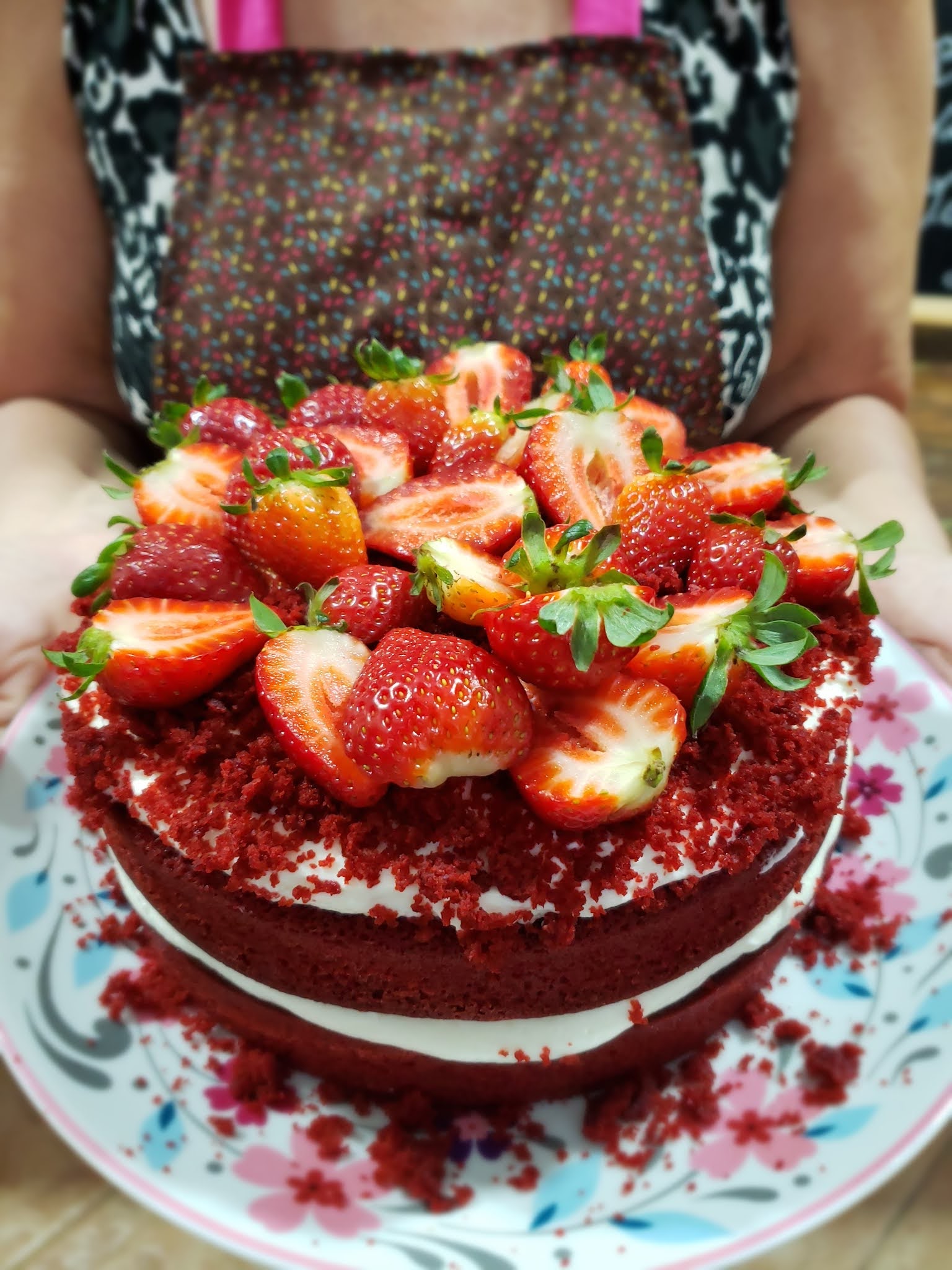 Fiquei muito empolgada e resolvi que precisava fazer algo diferente pra vocês… Consultei a pessoa que mais gosta de bolo que eu conheço, meu marido e, a resposta foi direta e reta: RED VELVET!
