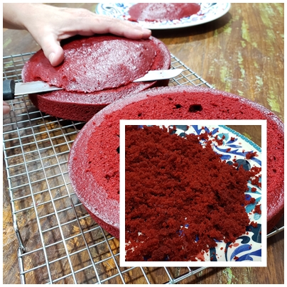 ◇ Corante : o corante em gel é opcional. Mas nesse caso seu bolo será de uma cor castanho claro, não muito vermelho; muito embora seu sabor seja idêntico. Há um preparo que utiliza purê de beterraba para buscar uma cor avermelhada, mas o resultado é incerto e pode variar de um vermelho mais claro a marrom.