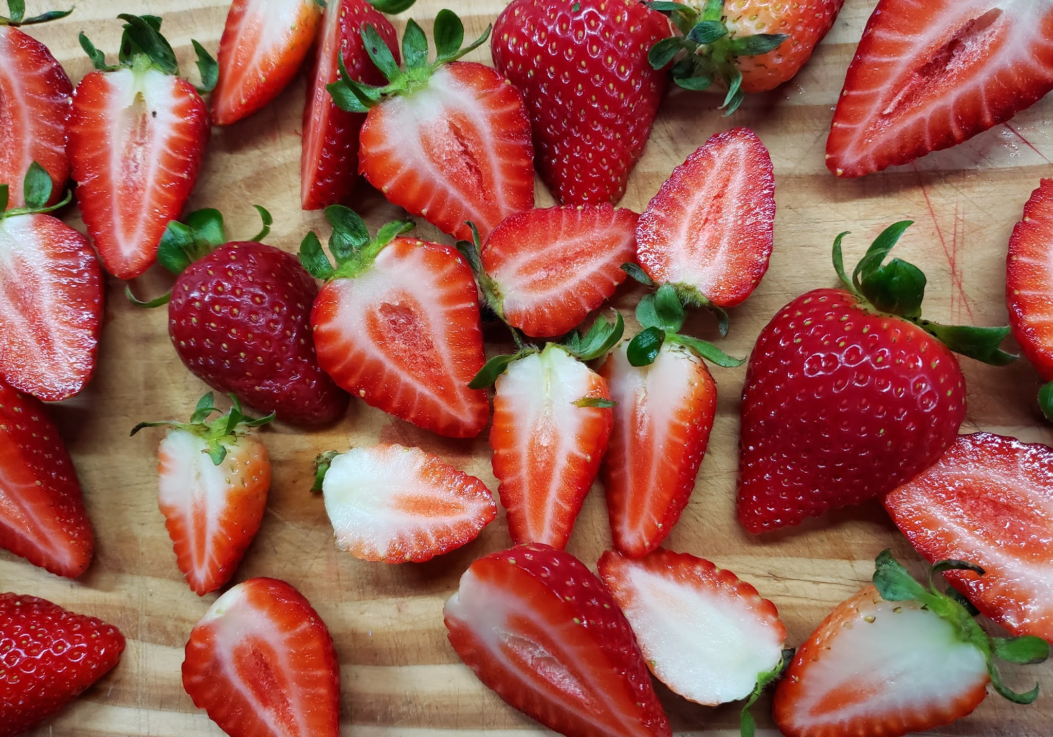 - Sugestão: Corte-os ao meio, preservando os cabinhos, pois eles darão cor e destaque ao topo de seu bolo. Mas, antes disso, lave-os e seque bem com papel toalha.