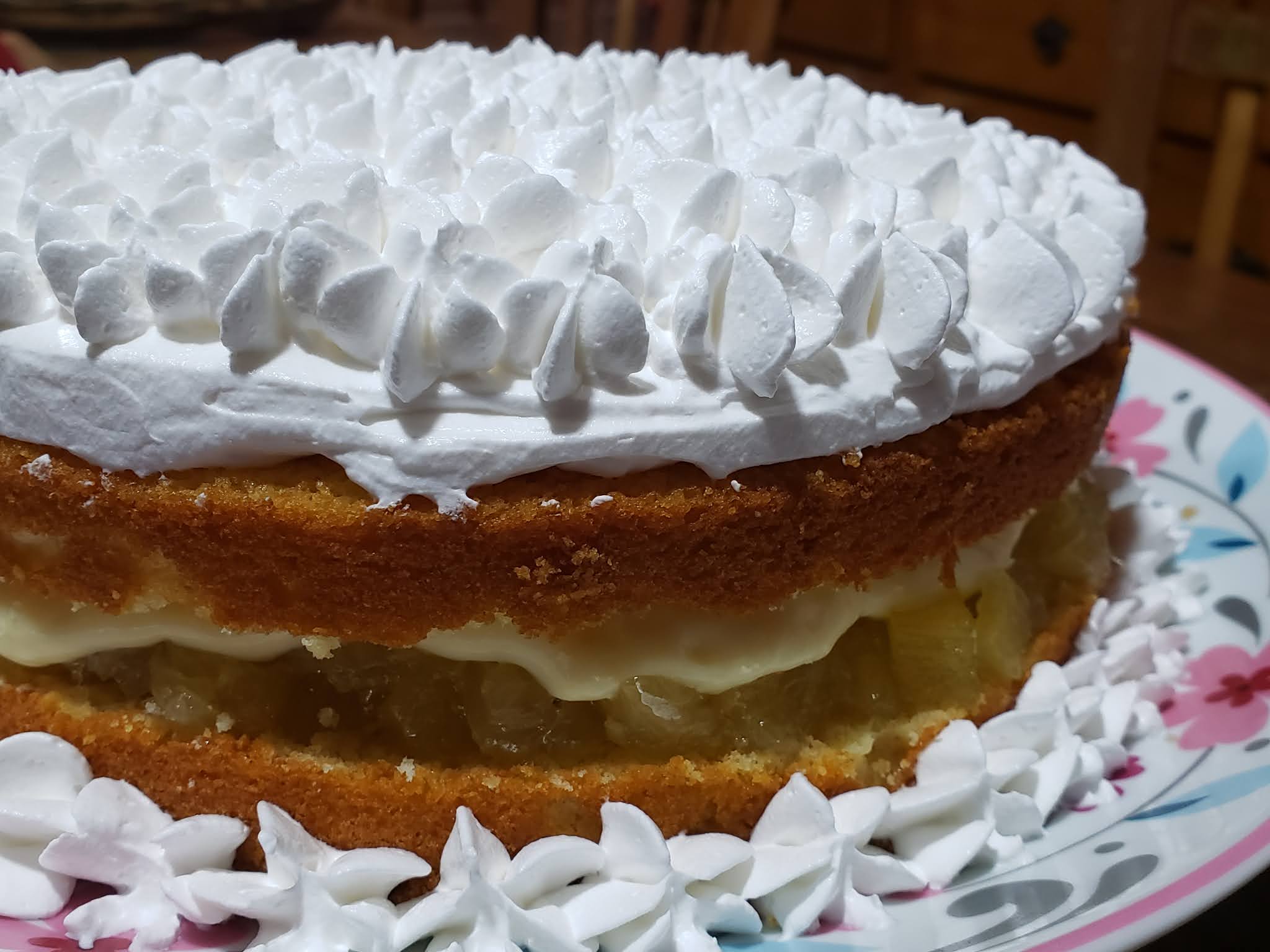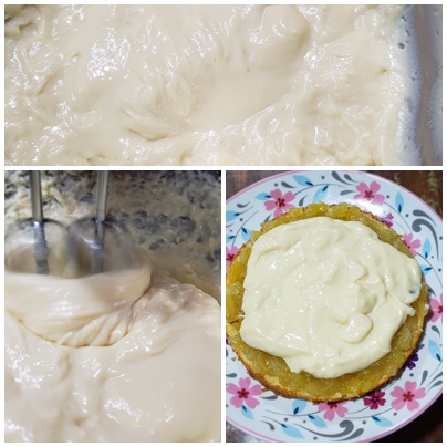 2. Em seguida, espalhe o creme, cobrindo todo o abacaxi e acertando as laterais.
