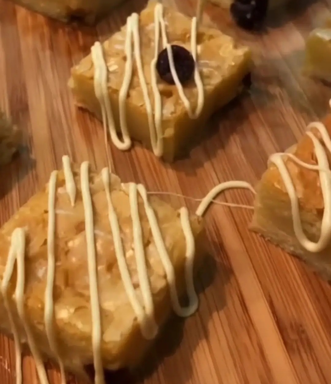 O bolo pode ser cortado como preferir, mais um quadrado de 6 x 6 cm já é bem generoso. Para completar, decore com chocolate derretido.