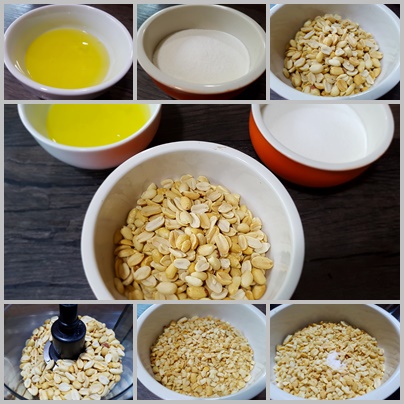 - 1 1/2 xícara (250 g) de amendoim torrado granulado ou amendoim torrado sem pele