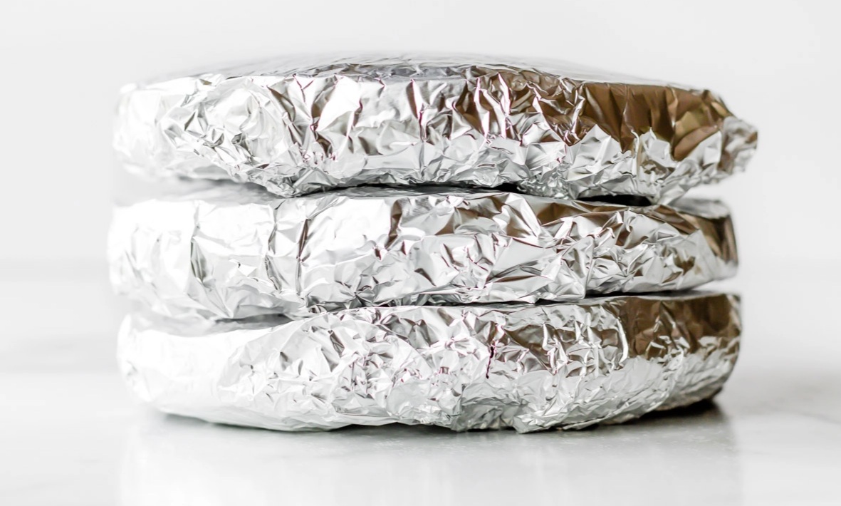 4. Embrulhe o bolo na folha de alumínio.