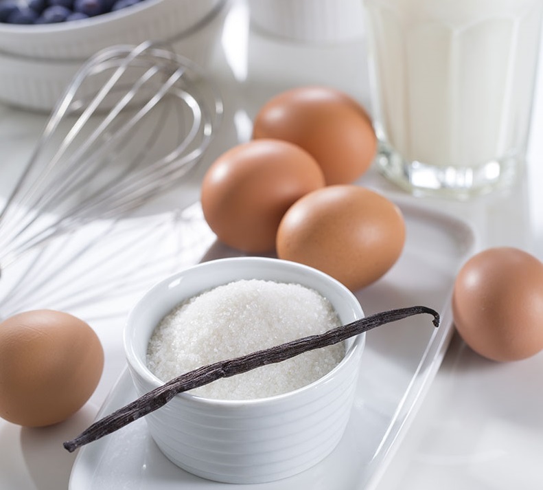 - 1 fava de baunilha ( substitua por uma porção de 2 a 4 colheres de chá de extrato ou essência)