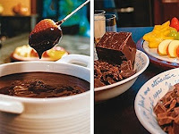 Agora o fondue doce, uma mistura de chocolates ao leite e meio amargo e que rende quatro porções.