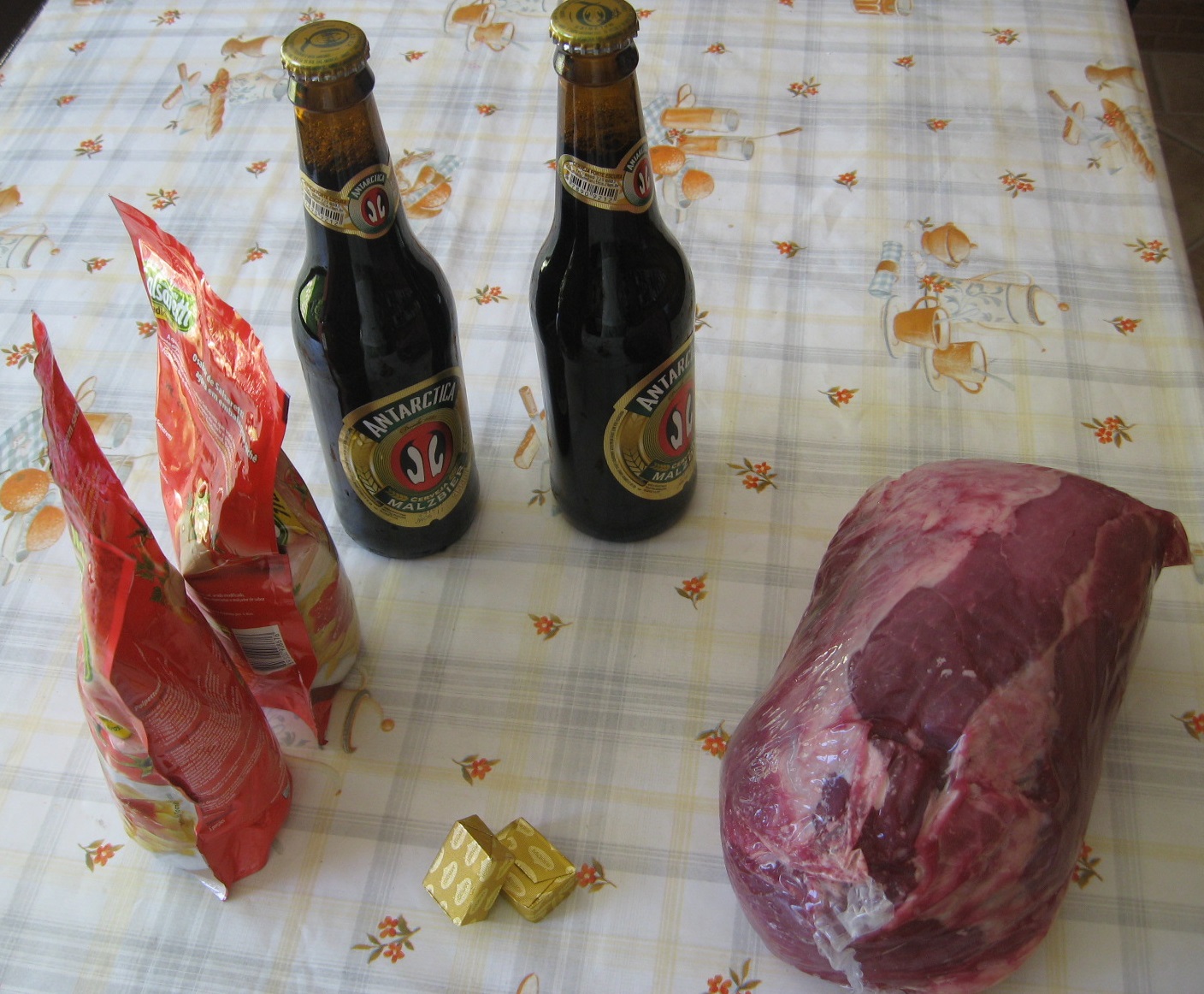 Algumas observações. Quanto à cerveja preta, o correto é utilizar a Malzibier, sendo que prefiro a Brahma ou Antártica. Mas, na falta dessas, você pode usar de outra marca (mas o molho ficará mais fraco) ou mesmo cerveja preta (Petra, Mãe Preta ou Caracu), mas o sabor conservará um pouco do amargor natural da bebida. Em relação ao molho de tomate, procure também uma boa marca, pois algumas são muito ralas, o que interferirá na textura e sabor do molho. Finalmente, a panela de pressão deve ser grande, para não apertar a carne, e a peça de lagarto preferencialmente mais comprida do que grossa para facilitar o cozimento. Pois bem, vamos lá.