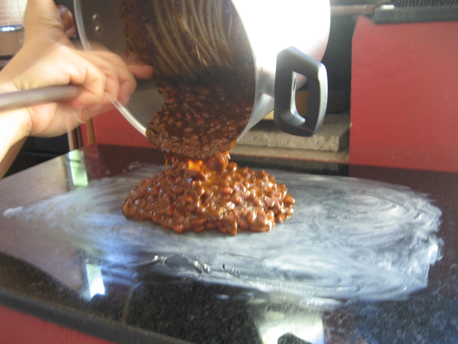 O doce é muito rápido de fazer e sua característica especial é a maciez. Há muitas formas de fazer pé-de-moleque, mas nesta a combinação de leite condensado e da manteiga deixa o açúcar caramelizado com uma consistência única. Os pedaços ficam firmes, mas macios.