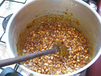 2. Coloque o amendoim na panela, todo o açúcar e a manteiga. Em seguida, comece a mexer. Sempre. O tempo todo. Até derreter o açúcar.