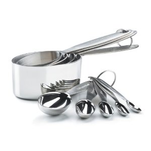 Líquidos : se for usar o jogo de medidas-padrão, fique perto da tigela que irá usar, encha a xícara até a borda, sem derramar. Se usar uma jarra graduada, coloque-a sobre uma superfície plana e verifique se está exatamente na marca.