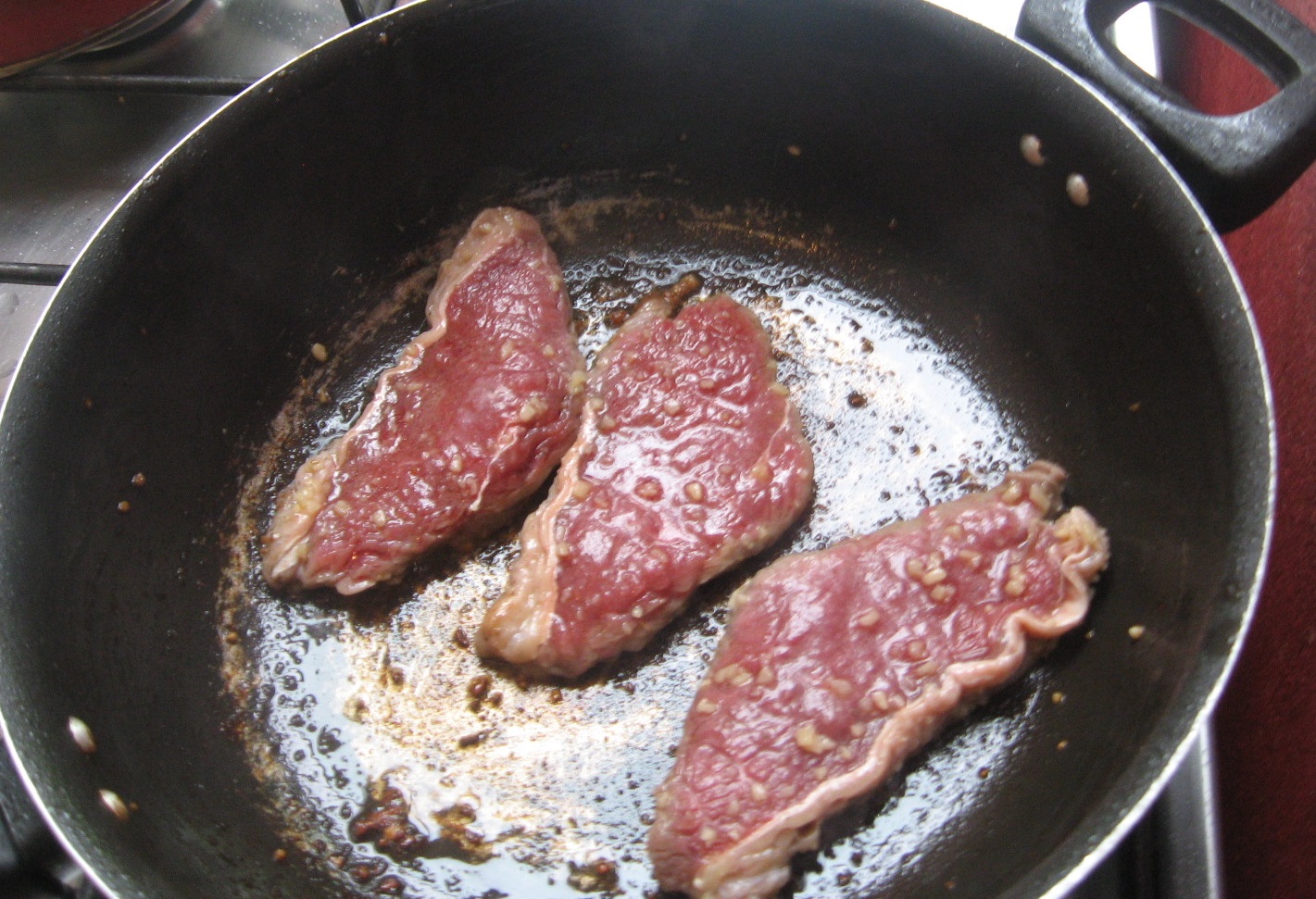 Decidi, então, resgatar uma receita que tinha adaptado de algo que vi na tv. É a picanha frita na frigideira, temperada com bastante alho, e servida com bastante cebola. Um prato simples, para ser servido com arroz branco e salada de tomate.