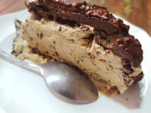 5. Desenformar a torta de sorvete e cobrir com a mistura de chocolate derretido e flocos de arroz.