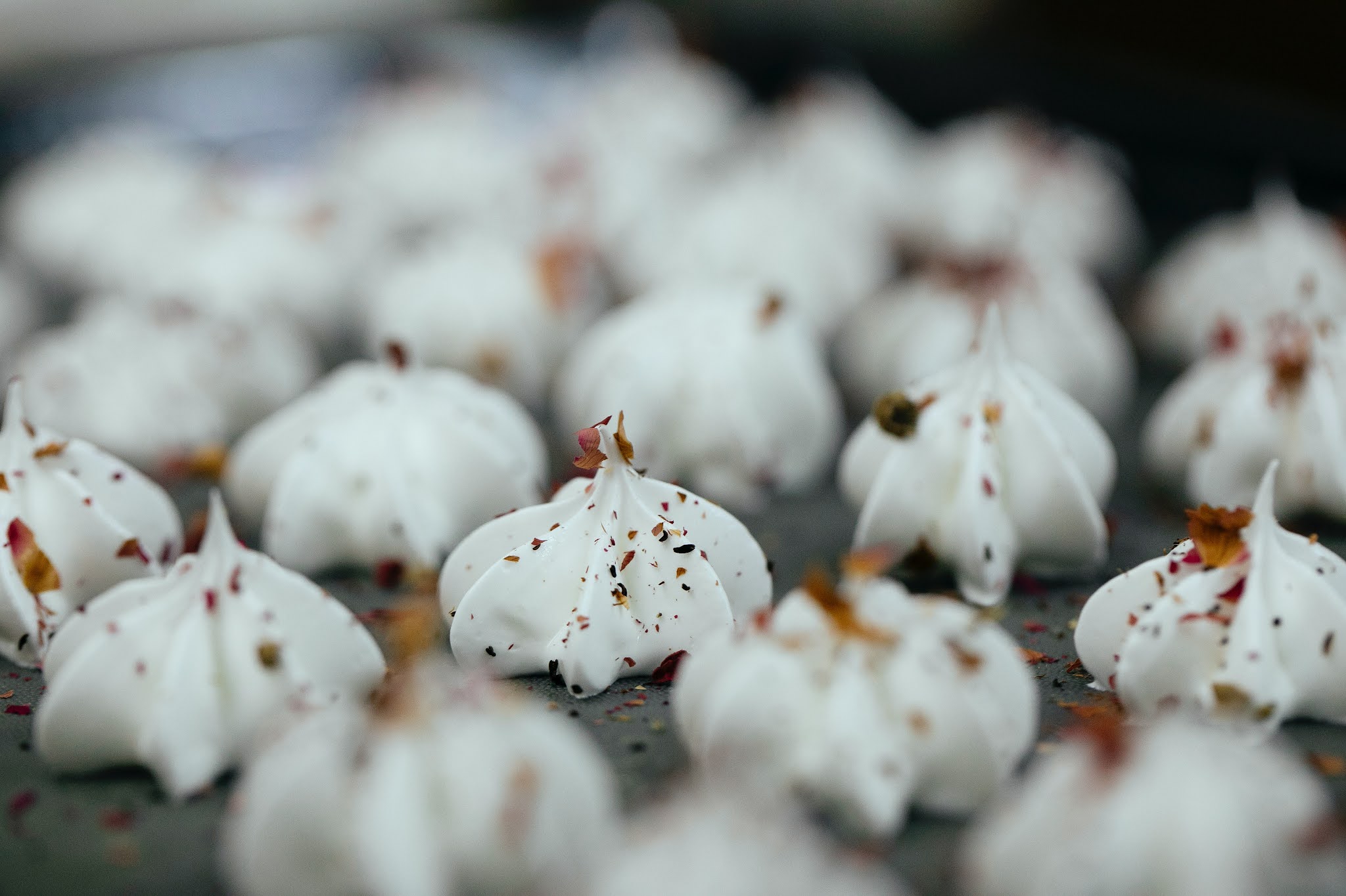 Suspiro Recheado : É possível rechear um suspiro. A resposta é sim. Primeiro faça uma base plana e baixinha de merengue. Em seguida, com bico de confeitar fino aplique um pouco do recheio que deseja no centro do merengue . Depois, venha com mais merengue e faça uma gora grande em cima do recheio; grande o suficiente para cobri-lo por completo. E se ficar algum buraquinho não se preocupe, basta pegar uma faquinha ou espátula e fechar. A regra importante é que o recheio tem que ser bem consistente e que não derreta facilmente. Pode ser doce de leite, brigadeiro, nutella, beijinho, doce de leite ninho etc. Não são recomendados : ganache, creme de confeiteiro ou outro qualquer à base de chantilly.