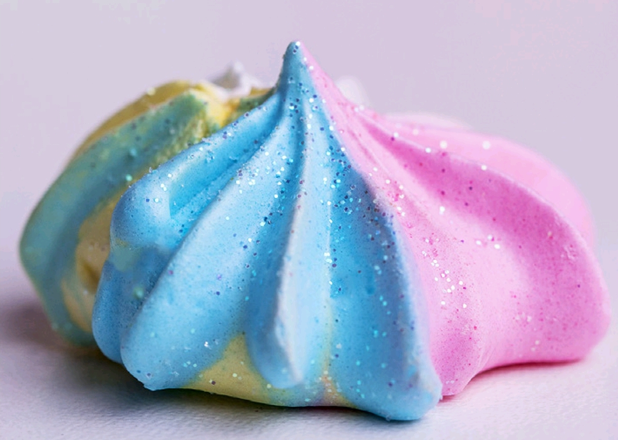 4. SABORIZAR E COLORIR (Opcional) – Nesse ponto você pode saborizar com raspas de limão, laranja; colocar outras essências, mas o importante é que esta seja de base alcoólica e não oleosa. Você também pode colorir seu suspiro com corante em gel ou em pó hidrossolúvel. É possível tingir o merengue com uma cor única ou você pode pegar uma ou várias porções e tingir um pouquinho de uma cor e um pouquinho de outra. Suspiros mesclados também ficam lindos! (veja na foto abaixo). Como fundo é branco, normalmente as colorações prováveis de se alcançar são bem claras. Se quiser um tom mais intenso é possível, porém tem que colocar bastante corante e para isso escolha um corante de uma boa marca, pois assim usará menos e, ainda assim, cuide para evitar aquele amargo residual, causado pelo uso excessivo do produto.