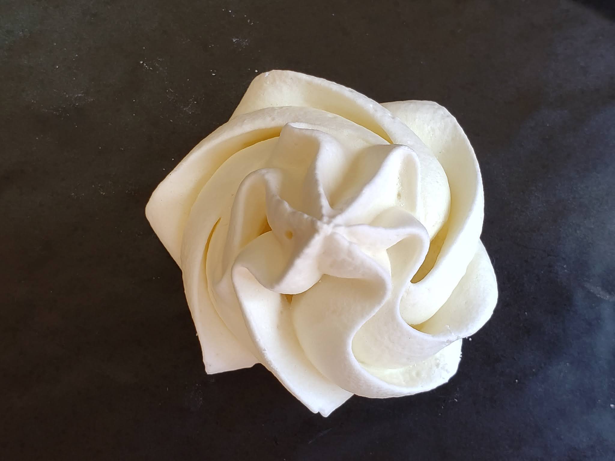 3. Adicione a essência de baunilha e o açúcar de confeiteiro peneirado e bata por mais 2 a 4 minutos, até que tudo se incorpore completamente e a mistura cresça mais um pouco. O ponto é de “pico firme”, mas ainda elástico e maleável; com cara de marshmallow, bem branquinho e brilhante.