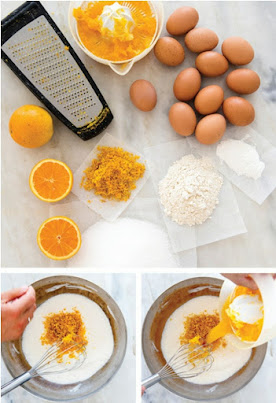 2. Adicione a raspa e o sumo das laranjas e mexa.